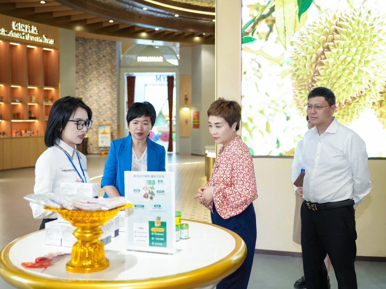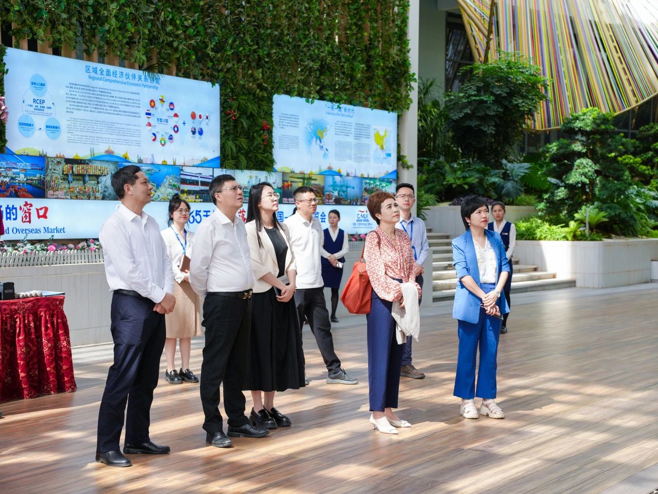 在匯聚中心參觀各主題展館的過程中,調(diào)研組詳細(xì)了解項(xiàng)目如何通過以“物”引“流”、以“物”促“流”的方式,搭建中國與東盟、RCEP其他區(qū)域國家乃至“一帶一路”沿線重要國家經(jīng)貿(mào)往來線上線下B2B、B2C一站式首選平臺,成為外國商家進(jìn)入中國市場的首站,以及中國商家拓展海外市場的窗口。