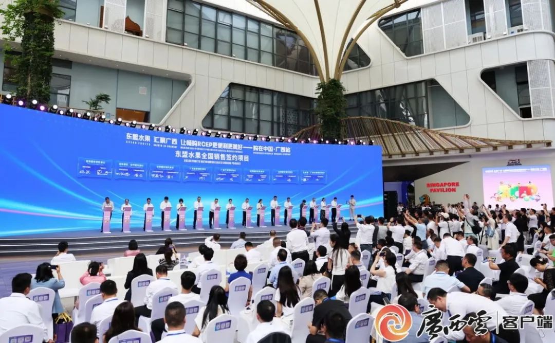 此次活動(dòng)圍繞“東盟水果及RCEP優(yōu)品·溯源之旅、匯聚廣西、通達(dá)中華、全民共享”4個(gè)篇章進(jìn)行,越南駐華大使范清平、文萊駐華大使拉赫瑪尼、柬埔寨駐南寧總領(lǐng)事唐肅安、印度尼西亞駐廣州總領(lǐng)事斌德加、老撾駐南寧總領(lǐng)事翁巴努·西巴色、馬來(lái)西亞駐南寧總領(lǐng)事法蒂爾·伊斯邁爾、緬甸駐南寧總領(lǐng)事凱素林、菲律賓駐廣州總領(lǐng)事艾瑞現(xiàn)場(chǎng)或通過(guò)視頻進(jìn)行推介;與輝同行(北京)科技有限公司負(fù)責(zé)人董宇輝進(jìn)行了分享并受聘為本次活動(dòng)直播電商合作伙伴,人民網(wǎng)董事長(zhǎng)、傳播內(nèi)容認(rèn)知全國(guó)重點(diǎn)實(shí)驗(yàn)室主任葉蓁蓁發(fā)布中國(guó)(廣西)—東盟水果大模型;南寧、欽州、崇左市,自治區(qū)商務(wù)廳、文化和旅游廳,中國(guó)食品土畜進(jìn)出口商會(huì)和國(guó)內(nèi)電商平臺(tái)、跨境電商企業(yè)代表分別進(jìn)行了推介;一批東盟水果采購(gòu)項(xiàng)目、RCEP優(yōu)品落地加工項(xiàng)目、東盟水果全國(guó)銷(xiāo)售項(xiàng)目進(jìn)行簽約,發(fā)布構(gòu)建中國(guó)—東盟人工智能合作生態(tài)圈倡議。
